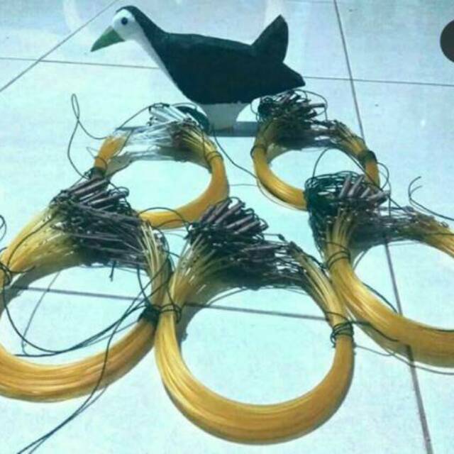 Produk rumahan jerat burung kareo model gantung burung wak wak/ruak ruak burung sintar sawah peruk atau blibis panjang 2meter=20kalong/mata racik.